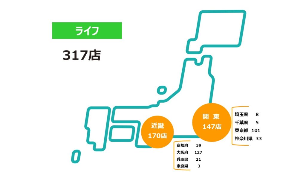 「ライフ」の店舗数をご紹介します。